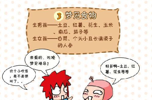 梦见吃黄瓜或得到黄瓜会生儿子;梦见吃茄子或得到茄子会生儿子;梦见大枣或吃枣,表示生儿子;梦见摘辣椒放进裙子里,暗示生贵子;梦见土豆或红薯,暗示要生儿子;梦见萝卜或南瓜,将来会生儿子;梦见玉米,暗示生儿子;看到红辣椒地,暗示生儿子;梦见粗大的人参或根系鲜明的人参,表示要生儿子。