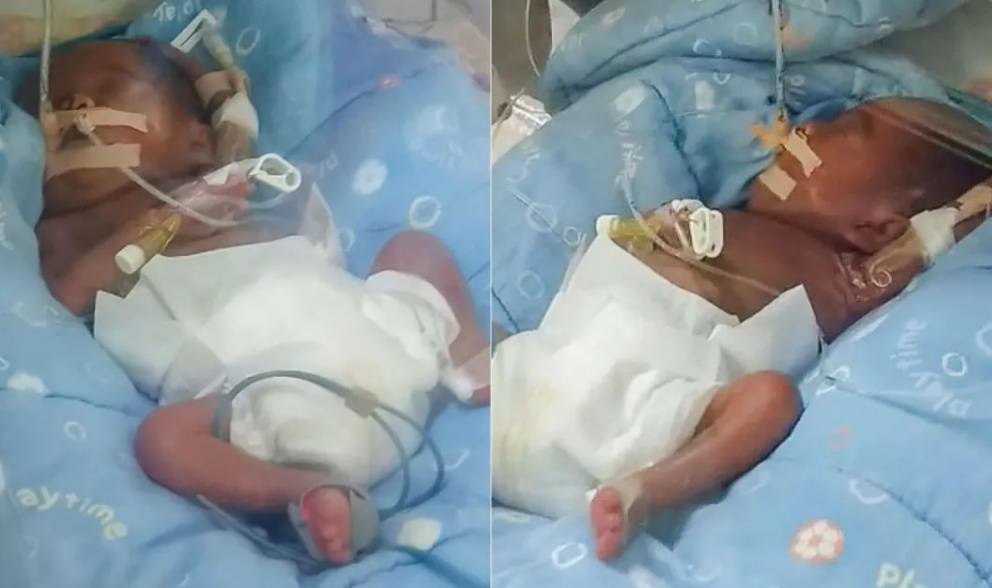 双胞胎孩子出生时,仅有560g,刚刚过一斤,出现各种并发症,刚出世就被放到保温箱里。