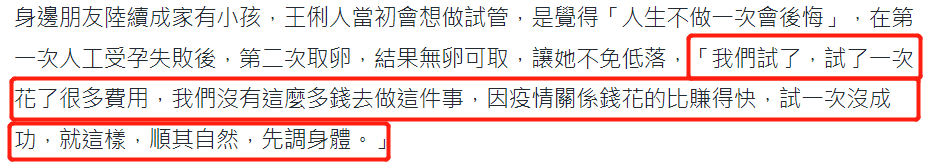 在这种情况下,王俐人面对生育压力肯定更大了,聊起这件事,王俐人也丝毫没有掩饰,明显表露出后悔的态度,坦然直到45岁了才意识到过去的自己对婚姻生活完全没规划,年轻的时候只觉得有了家庭就自然而然会有小孩,完全没考虑生育艰难这些事。