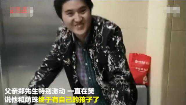 新生儿是试管婴儿二代宝宝,他的父亲看着他,抑制不住地笑着,非常激动。