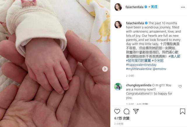 2月14日当天,香港知名演员陈法拉自曝抓住了鼠年的尾巴生下了可爱的女儿,她激动兴奋的心情溢于言表。