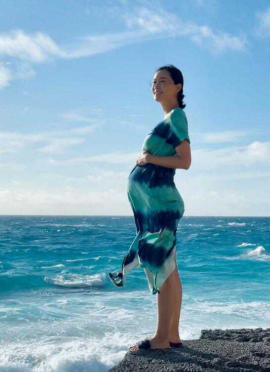 陈法拉分享了一张孕期在海边旅游的照片,照片里的她气色绝佳,笑容灿烂,她温柔抚摸着肚子的画面很有爱。