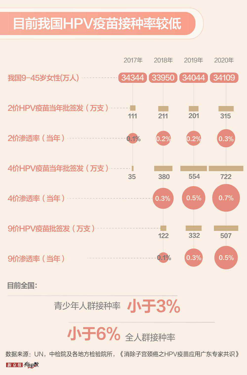 目前我国青少年人群接种率不到3%,全人群接种率不到6%,接种率低。