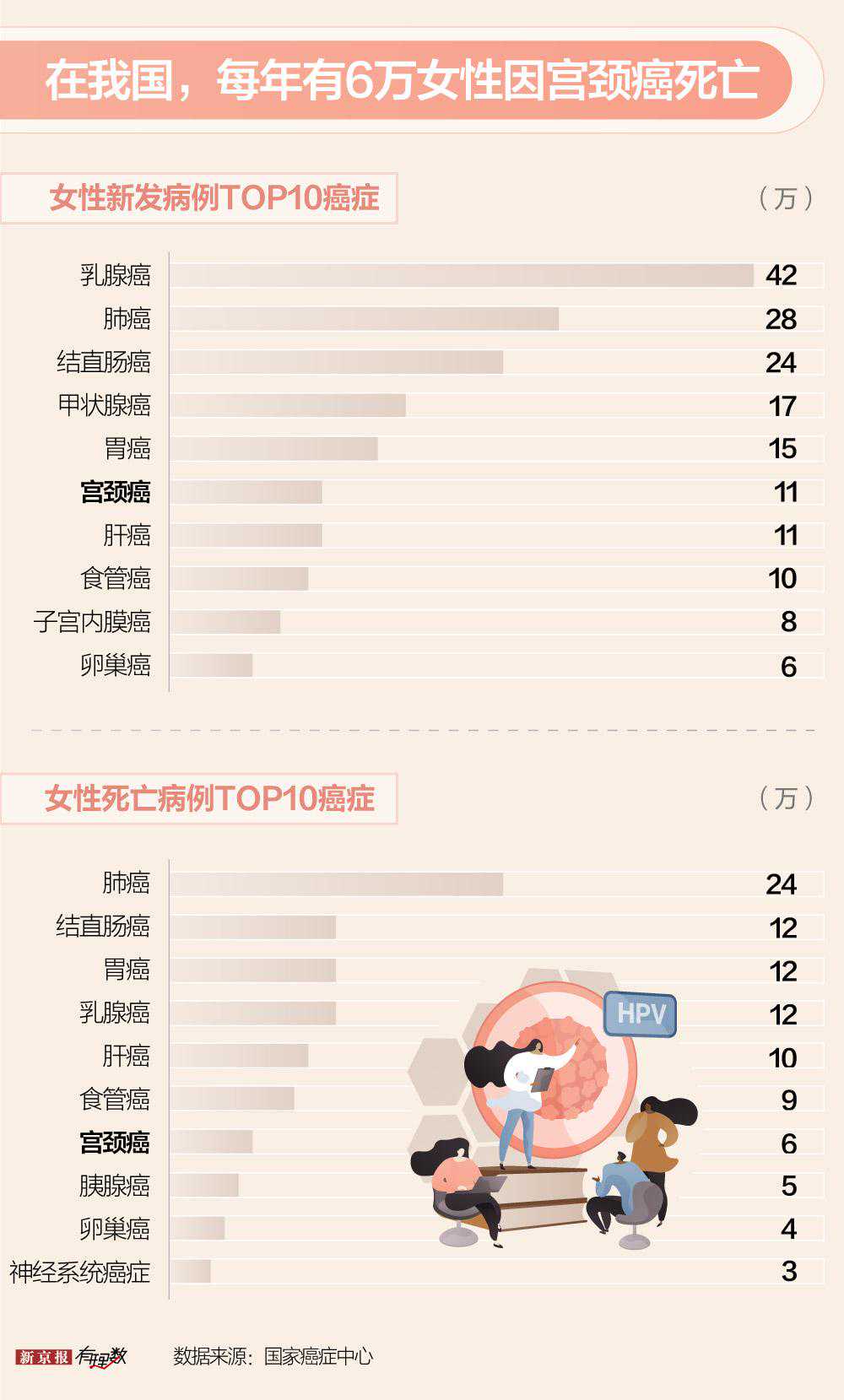 宫颈癌是常见的妇科恶性肿瘤之一,据今年2月国家癌症中心发布的数据,2020年我国新发癌症人数457万,死亡300万,这其中女性新发癌症患者209万,死亡118万。在女性所有新发癌症类型中,宫颈癌约有11万占5.2%,同时每年约有6万女性因宫颈癌死亡,占所有癌症类型的5%。