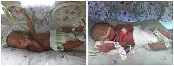 女孩出生体重1085克,男孩出生体重1810克。杭州网图