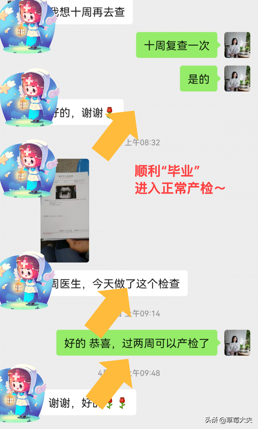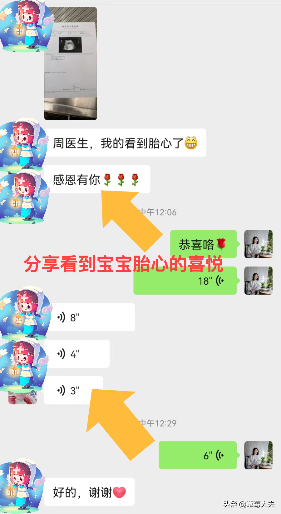 她给周薇博士发来可以看到胎心的B超报告,来和曾经与她并肩作战的「战友」们分享喜悦。