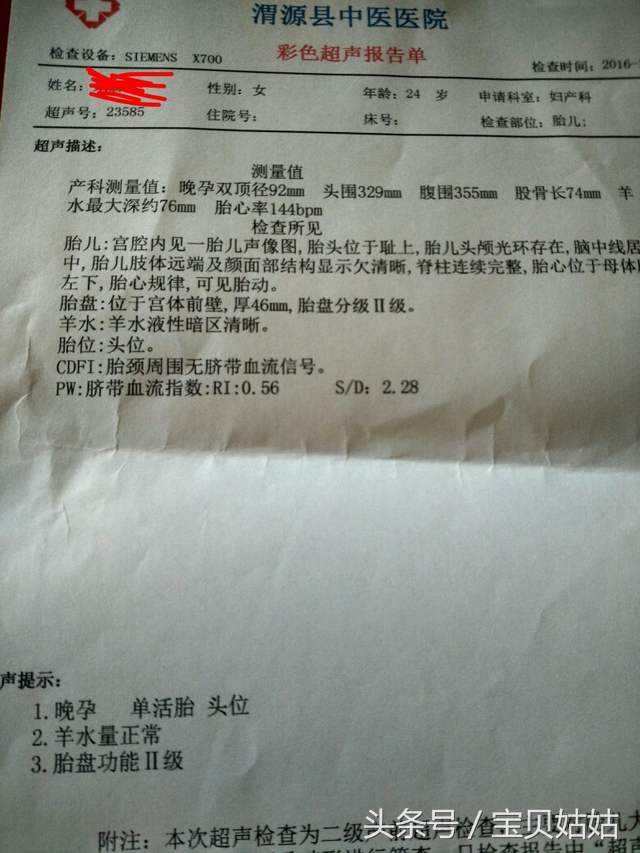 27周的时候做b超医生说多半是女孩,从肚型反应别人看了也说是女孩,上怀,肚圆,腋下发黑,肚子上黑线很浅,皮肤好不挑食。孕囊近圆形,胎心率初期中期都在150左右,后期在130到140多,从知道是女孩开始......
