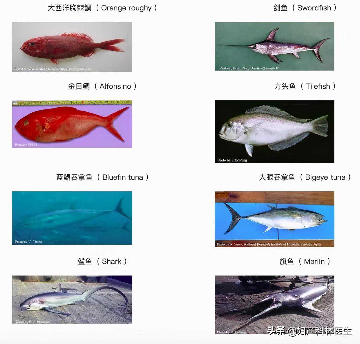 我特意归纳这几种鱼的图片,准妈妈们购买鱼和在外就餐点鱼时要避免哦。