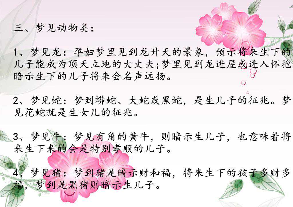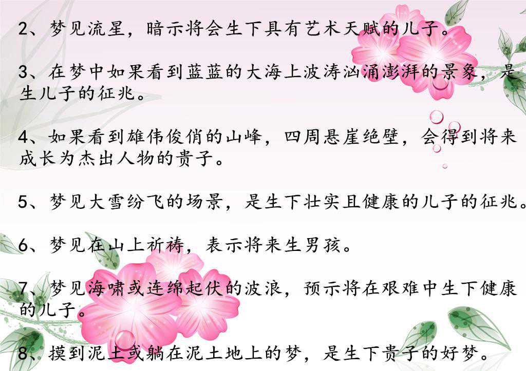 孕妇胎梦准不准?有一些妈妈们经历过胎梦而且得到了事实的验证,因此胎梦自古就有而且被不少人所证实。正如中医一样的道理,无法用科学解释,但是确实是存在的。哪些梦是生男孩的预兆,哪些梦是生女孩的预兆。怀孕的......